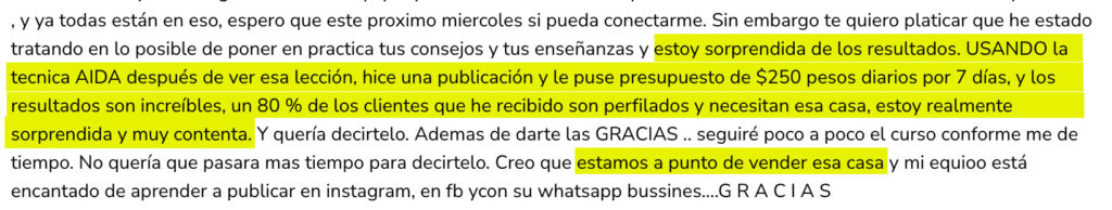 "80% de los mensajes convirtieron en ventas, generamos casi $1MDP en utilidad invirtiendo $4,000 MXN"